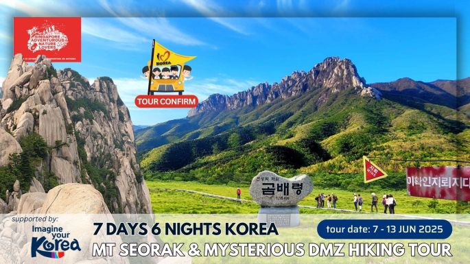 Embark on a breathtaking 7-day hiking tour through Korea's most scenic trails. From the peaks of Seoraksan to the serene beauty of Yongneup Swamp, each day promises new adventures and unforgettable memories. tour date: 7 to 13 June 2025 FOUR (4) Majestic Treks & Hikes Gombaeryeong Pass โฒ1,164m Yongneup Swamp Valley of Mt. Daeamโฒ1,304m Seoraksan's Ulsanbawi … Continue reading Korea, Mt. Seorak & Mysterious DMZ Hiking Tour